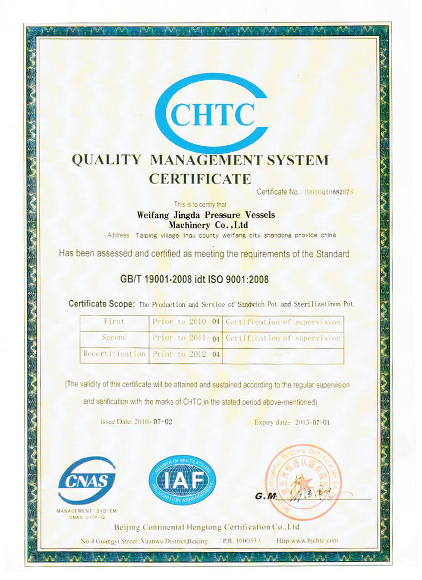 質(zhì)量管理體系認(rèn)證證書(shū)